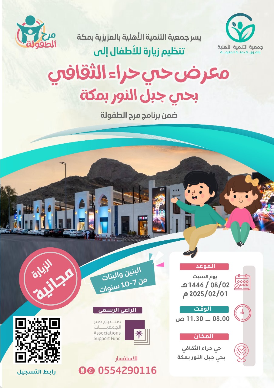 يسر جمعية التنمية الأهلية بالعزيزية بمكة أن تنظم زيارة لحي حراء الثقافي بجبل النور.. التفاصيل في الإعلان المرفق.